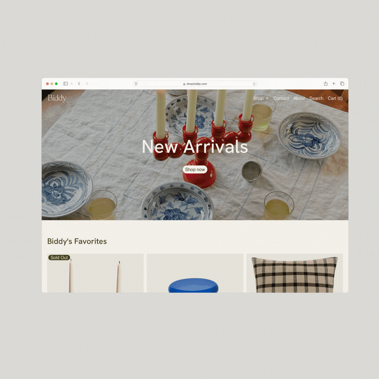 Shop Biddy, a dreamy little shop from Washington State, collaborated with me to leap from Etsy to a custom Shopify site. Together, we crafted a digital home that brings their earthy, eclectic brand to life. The new storefront feels like a natural extension of Biddy—balancing timeless design with modern, playful touches to help them connect beyond Etsy and grow their community.